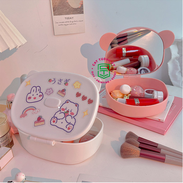 Công dụng: đựng mỹ phẩm, đồ trang điểm, có gắn gương nhỏ tiện lợi.