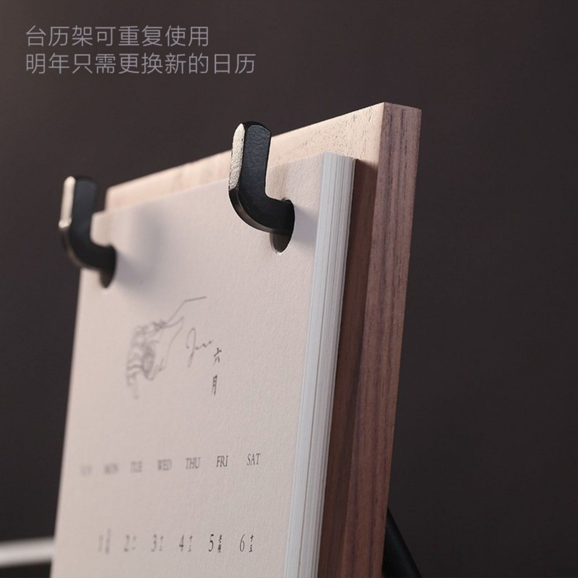 Lịch để bàn , lịch tết 2024 đế được làm bằng gỗ cố định bằng khung kim loại không gỉ sét, cứng cáp. Bộ lịch 12 tờ thể hiện 12 tháng, mỗi tờ thế hiện đầy đủ các ngày và có họa tiết trên mỗi tờ