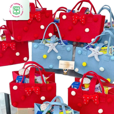 Túi quà tặng bằng nỉ 2026 độc đáo. Với chất liệu nỉ mềm mại, đa dạng màu sắc và kiểu dáng đáng yêu, túi quà tặng bằng nỉ không chỉ là vật đựng quà mà còn là một món phụ kiện trang trí tinh tế, có thể tái sử dụng nhiều lần.