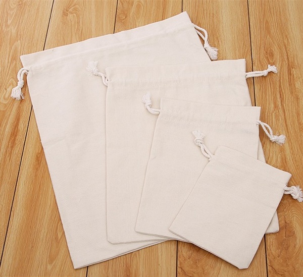Túi dây rút màu trắng kem in ấn họa tiết
